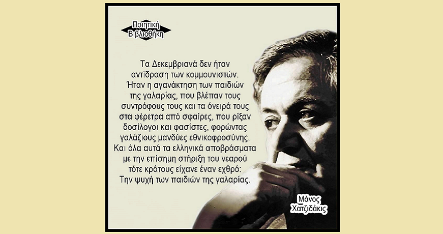 Τα παιδιά της γαλαρίας δεν ήσαν φαύλα, δεν ήσαν χίτες, δεν ήσαν ανώμαλοι με τον φασισμό στο ’να πλευρό τους. Δεν συμβιβάστηκαν με τους νικητές Γερμανούς, δεν υπήρξαν «πατριώτες» με το περιεχόμενο του χωροφύλακα και του μπράβου. Είχαν τη σκέψη όργανο, τα μάτια υγρά κι ακούραστα να βλέπουνε τον κόσμο και την ψυχή παρθενική και απροσάρμοστη στη μεταπολεμική ελληνική αθλιότητα. Τα Δεκεμβριανά δεν ήταν αντίδραση κομμουνιστών (…).